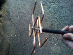 Voila il n'y a plus qu'a faire les essais. J'ai ralongé par un petit fils de cuivre chaque extremité afin de profiner le réglage final et le résultat est là --------------------------->